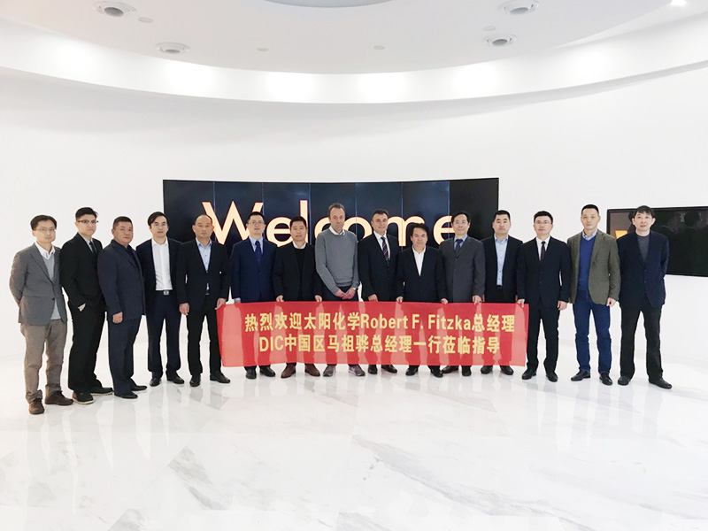 11月27日,DIC集團中華區馬祖驊總經理與從太陽化學Robert F.Fitzka總經理從上海來到臨安參觀帝龍企業。