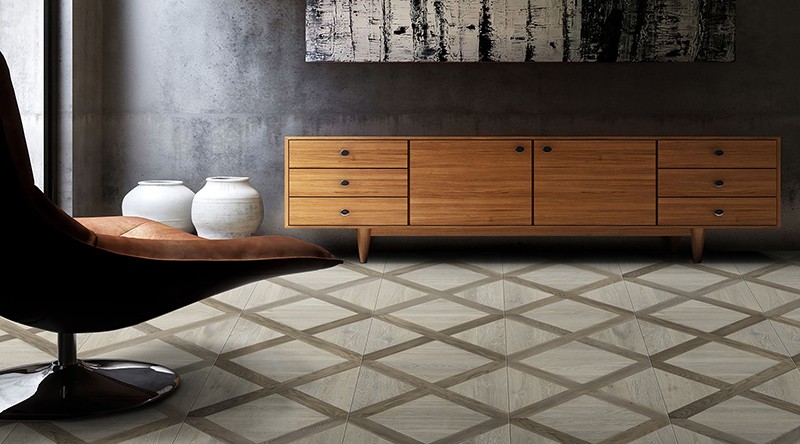 設計理念:?將浪漫主義色彩、藝術線條及空間層次感發揮到了極致,深、淺相間的拼花地板,對比強烈的木質色彩,拼貼效果如棋盤一樣,讓空間頓時充滿著戲劇意味,對于個性、藝術范兒的都市貴族來說可以大膽嘗試。